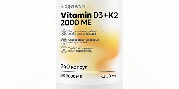 Biogenesis Витамин D3+K2 2000МЕ/50 мкг, капсулы 240 шт